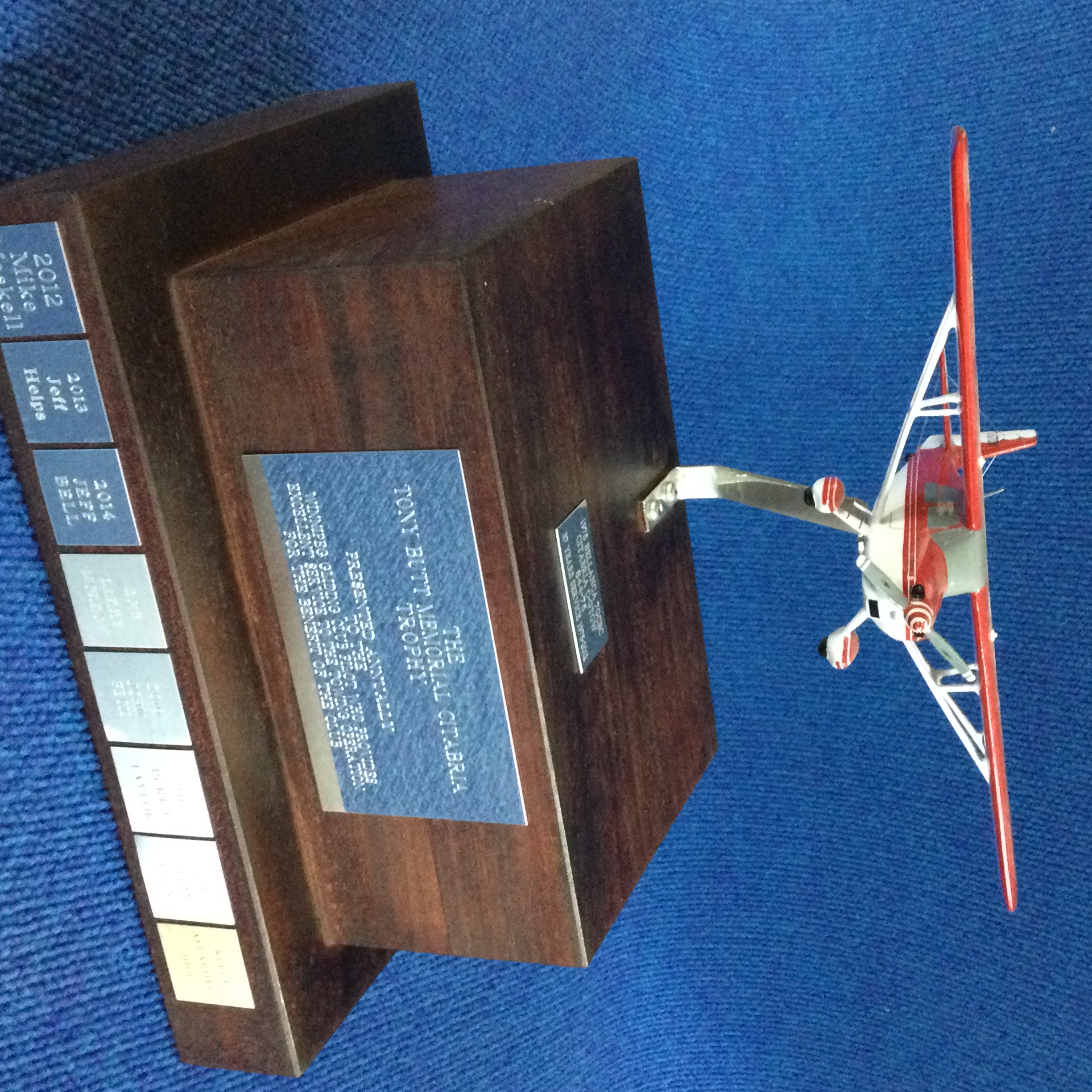 Awarded to the Tow Pilot who has most usefully served the Club over the last year. Donated by Jeff Bell, Natalia Gadomska, and Pat Pelletier.